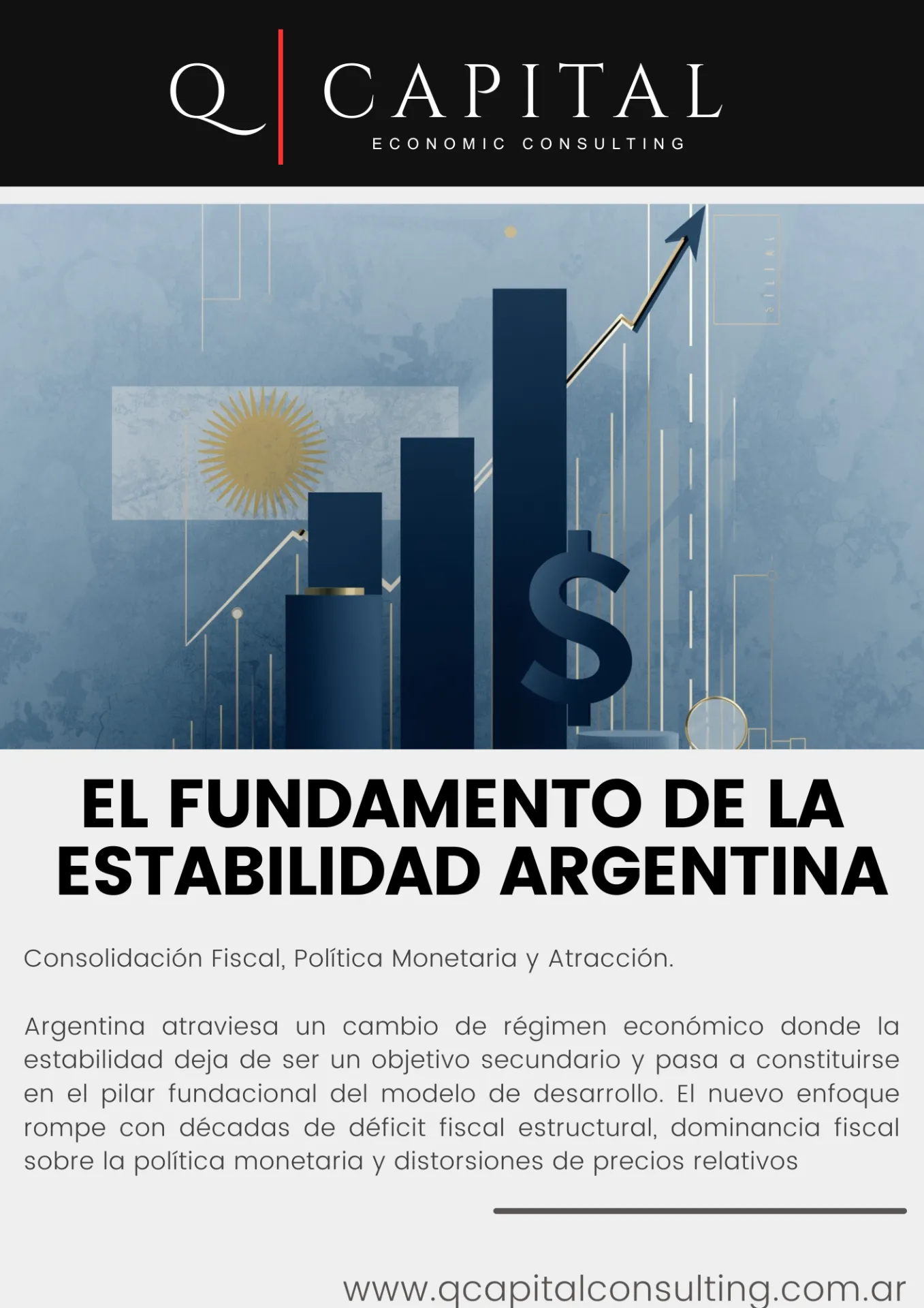 Argentina atraviesa un cambio de régimen económico donde la estabilidad deja de ser un objetivo secundario y pasa a constituirse en el pilar fundacional del modelo de desarrollo. El nuevo enfoque rompe con décadas de déficit fiscal estructural, dominancia fiscal sobre la política monetaria y distorsiones de precios relativos
