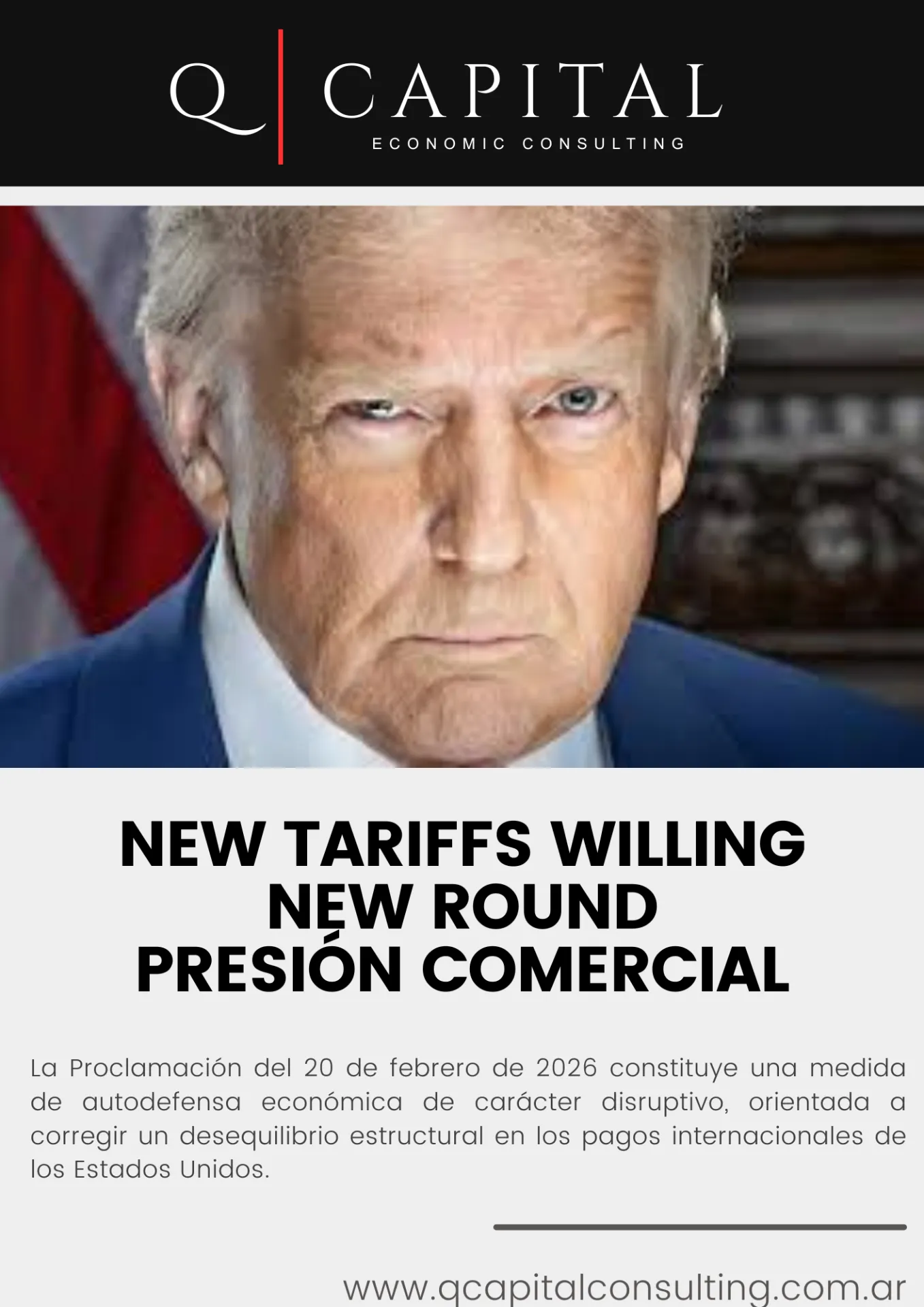La Proclamación del 20 de febrero de 2026 constituye una medida de autodefensa económica de carácter disruptivo, orientad+a a corregir un desequilibrio estructural en los pagos internacionales de los Estados Unidos. Bajo la visión de la administración Trump, esta política busca revertir el agotamiento del modelo previo, donde el déficit de cuenta corriente escaló al 4,0% del PBI en 2024 —duplicando el promedio de 2,0% observado entre 2013 y 2019—. Este deterioro se ha manifestado en una degradación crítica de la Posición de Inversión Internacional Neta (NIIP), que alcanzó un alarmante -90% del PBI al cierre de 2024, frente al promedio de -41% registrado en la década anterior. El catalizador técnico de esta decisión es el quiebre de la balanza de rentas primarias, que en 2024 se tornó negativa por primera vez desde 1960. Al perderse este histórico factor estabilizador —que permitía a EE. UU. compensar sus déficits comerciales con retornos de capital y trabajo en el exterior—, la administración ha optado por un recargo del 10% ad valorem como herramienta de presión negociadora y eje de una reindustrialización forzada. Este giro hacia el proteccionismo selectivo no es reactivo, sino estratégico: busca corregir un déficit de bienes que persiste en los USD 1,2 billones. Esta arquitectura de defensa se instrumenta a través de una base jurídica que otorga al Ejecutivo una flexibilidad operativa sin precedentes